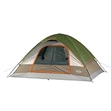 Spacious and weather-resistant, the Wenzel Pine Ridge 10-by-8-foot dome tent sleeps four to five campers in its two rooms, making it ideal for small families or couples with lots of gear. The Pine Ridge is made of rugged, weather-repellent Weather Armor polyester with a polyurethane coating for reliability, helping it keep water out and warmth in. The sonic-sealed, polyethylene tub-style floor, meanwhile, is welded and not sewn, eliminating needle holes that might otherwise attract water seepage. And campers will love the variety of ventilation points--including two mesh doors, one mesh window, and a mesh roof--which combine to create a refreshing cross breeze on warm evenings.
