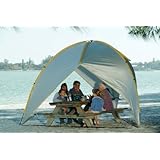 Enjoy the great outdoors while remaining almost totally protected from the sun's harmful UV rays with the Tripod Shelter from ABO Gear. The tripod shelter is easily erected, durable, and stands up to even the strongest winds, offering users shade and protection from the elements. The entire structure weighs less than 10 pounds, and collapses down into a convenient carrying back with backpack-style straps. The shelter's triangular design measures 12 feet to a side and has a center height of eight feet, creating a spacious interior for the whole family to enjoy. Constructed of 150D, PU-coated nylon, the shelter features adjustable webbing tension strap and heavy-duty shock-corded poles. For maximum stability in windy conditions, the tripod sun shelter additionally includes conical sand pockets, pegs, and guy ropes.
